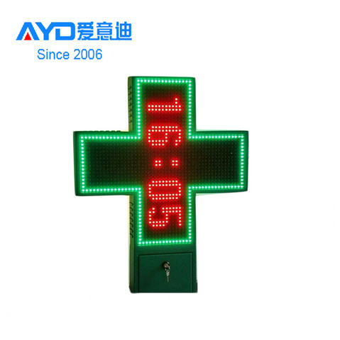Letrero de farmacia cruzado LED para interiores de 12*12 pulgadas, tablero acrílico blanco, bombillas verdes azules, cartelera animada